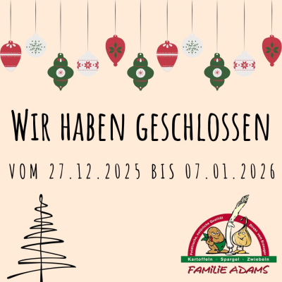 Hofladen vom 27.12.2025- 07.01.2026 geschlossen.